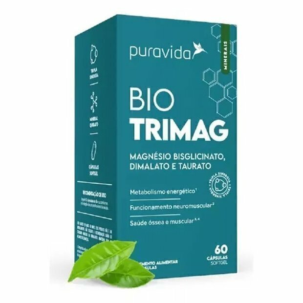 Bio Trimag: Sinergia entre 3 tipos de magnésio. Sem magnésio, o corpo não trabalha em sua capacidade máxima. O magnésio está envolvido em mais de 600 reações importantes no organismo. Ele está diretamente ligado à transmissão de impulsos nervosos. Mais de 50% do magnésio é armazenado nos ossos, enquanto a outra porção é distribuída por todo o corpo. Ou seja, é um nutriente vital para a saúde prosperar, e 80% da população brasileira apresenta deficiência desse elemento mineral. Os minerais podem ser encontrados em diversas formas moleculares que possuem diferentes taxas de absorção e de resposta no organismo. Para o Bio Trimag, desenvolvemos uma fórmula com três tipos de magnésio: Magnésio Malato Consiste na combinação de magnésio com ácido málico, um composto orgânico encontrado naturalmente em frutas, como as maçãs. Magnésio Bisglicinato Uma das melhores formas para suplementar o magnésio, por isso foi escolhido pela equipe de pesquisadores da Puravida para compor esta tripla sinergia. Magnésio Taurato Trata-se da combinação entre magnésio e taurina. A taurina é um aminoácido presente em maior quantidade em alimentos de origem animal, importante em diversas funções no organismo.